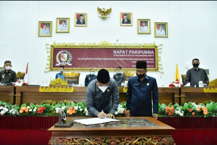 Dengan ditandatanganinya Nota Kesepakatan Rancangan KUA & PPAS APBD tahun Anggaran 2022, maka eksekutif dan legislatif pada hakekatnya mempunyai tanggung jawab yang sama melalui fungsi dan kewenangannya masing-masing untuk membangun Kabupaten Tulang Bawang Barat dalam rangka mencapai keberhasilan pelaksanaan pembangunan pada Tahun Anggaran 2022.
