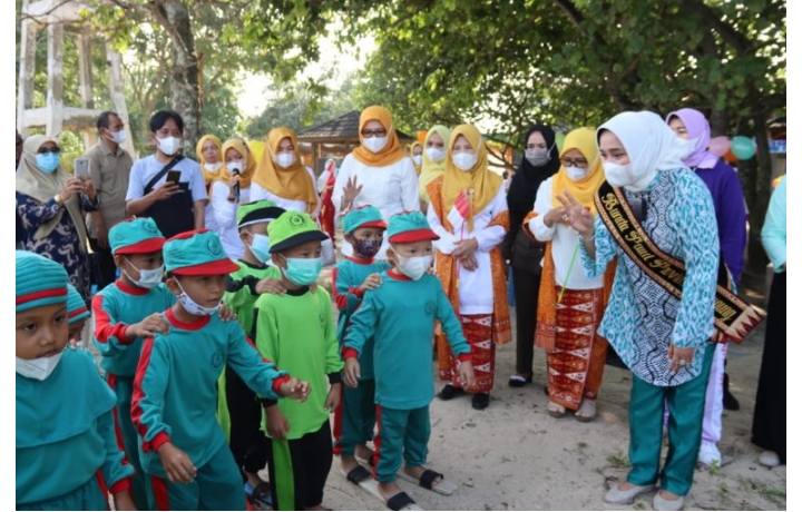 Bunda PAUD Provinsi Lampung, Riana Sari Arinal bermain bersama anak – anak PAUD di Kabupaten Pesisir Barat, Jum’at, (22/10/2021).