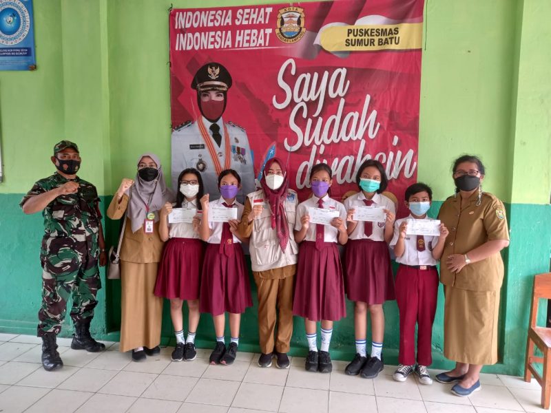 “Saya sangat mengapresiasi dan meghaturkan banyak terima kasih kepada seluruh orang tua yang sudah turut berpartisipasi dan membantu pemerintah dalam memerangi covid – 19 dan kepada pihak sekolah yang sudah memfasilitasi tempat untuk pelaksanaan serbuan vaksinasi covid – 19 ini, karena vaksinasi yang diberikan ini insyaallah bisa menjaga putra dan putri bapak ibu semuanya terhindar dari penularan dan penyebaran covid – 19 ini,”Ucap Pelda Sudarsono.