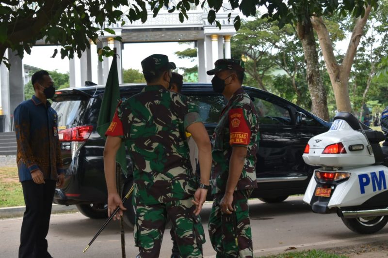 Komandan Kodim 0410/KBL Kolonel Inf Faisol Izuddin Karimi mendampingi Danrem 043/Gatam Brigjen TNI Drajad Brima Yoga dalam rangka pemantauan peresmian Masjid Safinatul Ulum UIN Raden Intan Lampung oleh Wakil Presiden (Wapres) K.H. Ma’ruf Amin.