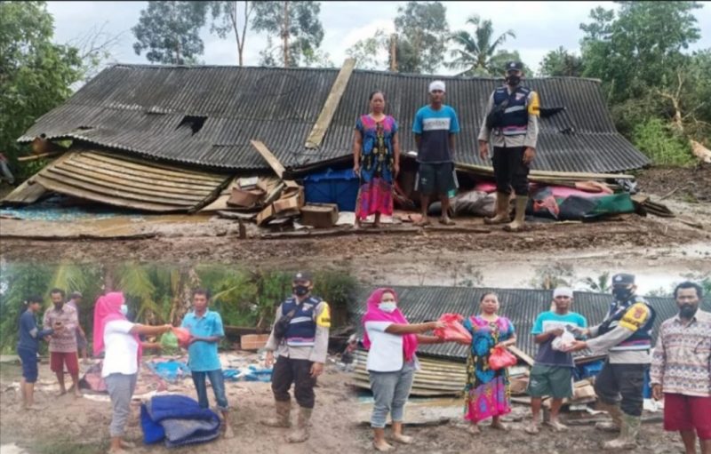 Polsek Rawa Pitu melakukan evakuasi dan pendataan terhadap korban bencana alam angin puting beliung yang terjadi di wilayah hukumnya.