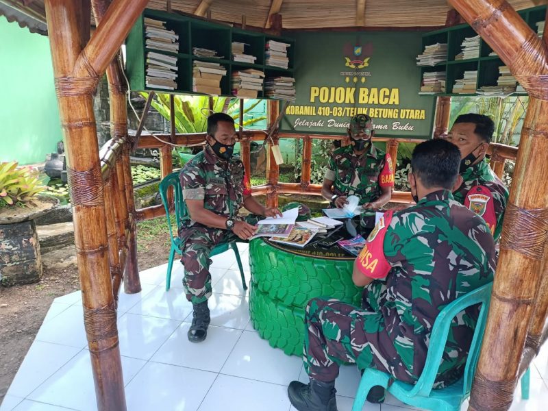 Danramil 410-03/TBU Mayor Inf Anang Nugroho mengatakan aktivitas membaca buku merupakan suatu hal yang wajib dilakukan di sela-sela waktu kegiatan.