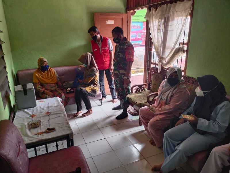 Ciptakan herd imunnity untuk lansia, Koramil 410-03/Teluk Betung Utara Kodim 0410/KBL bersama dengan Puskesmas Sumur Batu laksanakan kegiatan vaksinasi covid – 19 door to door yang bertempat di RT 06, 06, 07 dan 11 Kelurahan Pengajaran Kecamatan Teluk Betung Utara Kota Bandar Lampung. Kamis (13/01/2022)