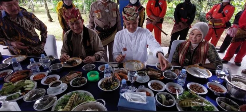 “Wah ini luar biasa, Nyeruit dengan pak Edward satu meja penuh makanan. Ada berbagai macam ikan, ada yang besar, kecil. Sambal, nah ini cocok ada lalapannya. Saya suka lalapan,” ucap Ganjar saat makan bersama.