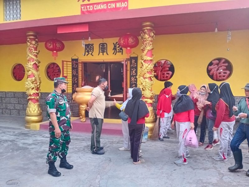 Buanaangkasa.com-BANDAR LAMPUNG: Koramil 410-01/Panjang Kodim 0410/KBL beserta unsur kewilayahan menggelar kegiatan Jumat bersih di Vihara Senapati, Kel. Panjang Utara, Kec. Panjang. Kota Bandar Lampung, Jumat (28/1)