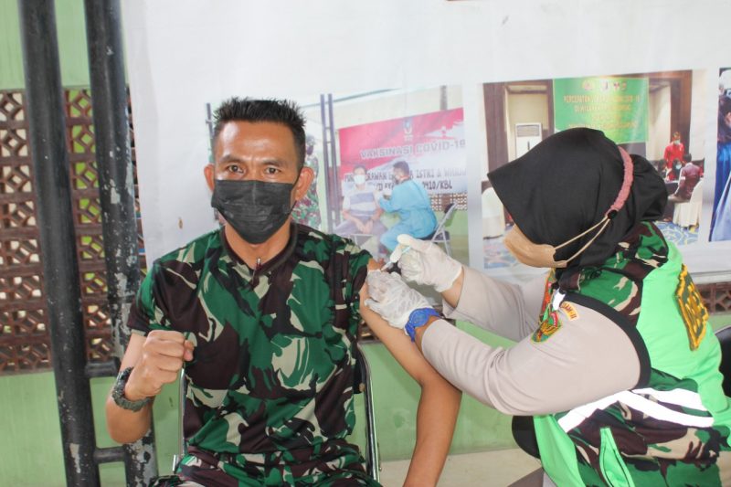 Komandan Kodim 0410/KBL, Kolonel Inf Faisol Izudin melalui Pasiops Kodim 0410/KBL, Mayor Inf Djafar saat memantau kegiatan mengungkapkan bahwa vaksin Booster disuntikkan untuk keluarga besar Kodim 0410/KBL baik itu Prajurit TNI, PNS maupun keluarganya.