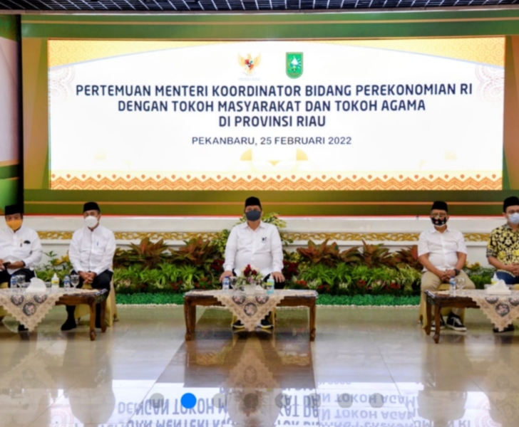 Selepas dari kegiatan vaksinasi di SDN 158 Pekanbaru, Menko Airlangga bertemu dengan tokoh masyarakat dan tokoh agama Provinsi Riau. Pertemuan yang dilaksanakan di area Rumah Jabatan Gubernur Riau ini membahas tentang pengembangan ekonomi berbasis syariah di Provinsi Riau dan peran tokoh masyarakat dalam membantu Pemerintah menangani Covid-19.