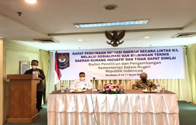 Demikian disampaikan Pelaksana Harian (Plh.) Badan Penelitian dan Pengembangan (Litbang) Kemendagri, Eko Prasetyanto, dalam agenda “Sosialisasi dan Bimbingan Teknis Inovasi Daerah pada Daerah Kurang Inovatif dan Tidak Dapat Dinilai”, di Hotel Sahid Surabaya, Rabu (9/3/2022).