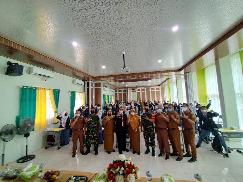Peltu Adi Purnimo anggota Koramil 410-01/Panjang Kodim 0410/KBL memberikan materi wawasan kebangsaan kepada pelajar Sekolah Menengah Atas Negeri (SMAN) 5 Bandar Lampung. Senin (21/3/22)