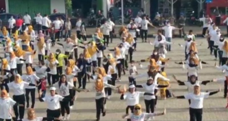 Pemerintah Kabupaten Tulangbawang Barat (Tubaba) melaunching Senam Kreasi Nenemo di Lapangan Parkir Pasar Modern Pulung Kencana, Kecamatan Tulangbawang Tengah, Jumat (01/04/2022) pagi.