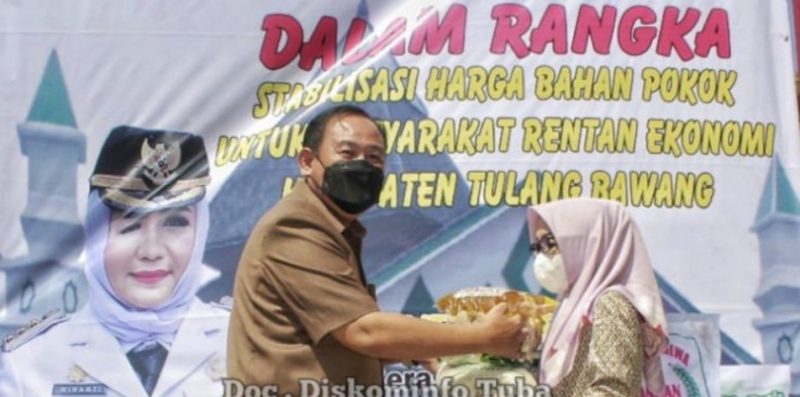 Di awal Bulan Ramadhan 1443 H Tahun 2022 ini Bupati Tulang Bawang Dr Hj Winarti SE MH menggelar Pasar Murah yg di awali dari Kecamatan Menggala ( 4 Kelurahan ).