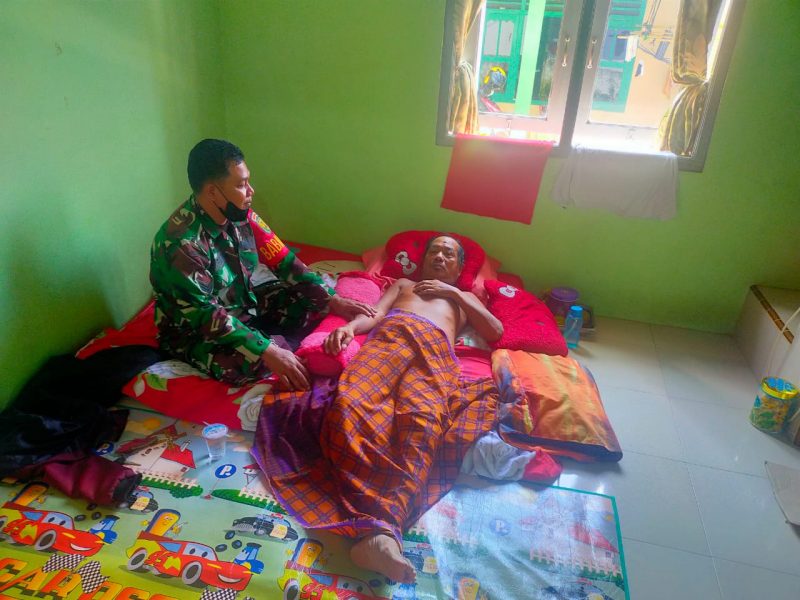 Sebagai wujud kepedulian, Serka Fikri Babinsa Koramil 410-03/TBU menjenguk warga binaan yang terbaring karena sakit di Jln. RE Martadinata Teluk Betung Timur Bandar Lampung, pada Jumat (13/5/2022)