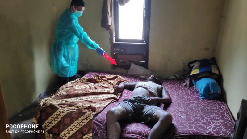 Warga Kelurahan Panaragan Jaya Kec Tulang Bawang Tengah Kabupaten Tulang Bawang Barat, diigegerkan dengan penemuan jenazah membusuk di salah satu rumah Minggu pagi sekira pukul 10.00 wib 22/5/2022.