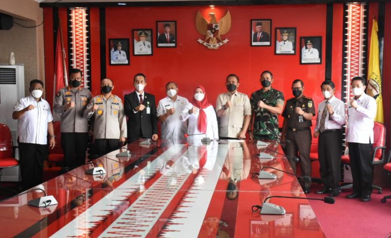 Konferensi pers ini menghadirkan Forum Komunikasi Daerah (Forkopimda) Bandar Lampung, tampak diantaranya Walikota Eva Dwiana, Dandim 0410/KBL Kolonel Inf Faisol Izuddin Karimi dan Kapolresta Bandar Lampung.