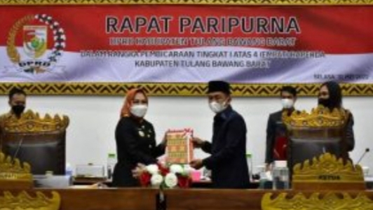 Rapat Paripurna DPRD dalam Rangka Pembicaraan Tingkat I atas 4 (empat) Raperda Kabupaten Tulang Bawang Barat (Tubaba), di Ruang Paripurna DPRD setempat. Selasa (31/05).