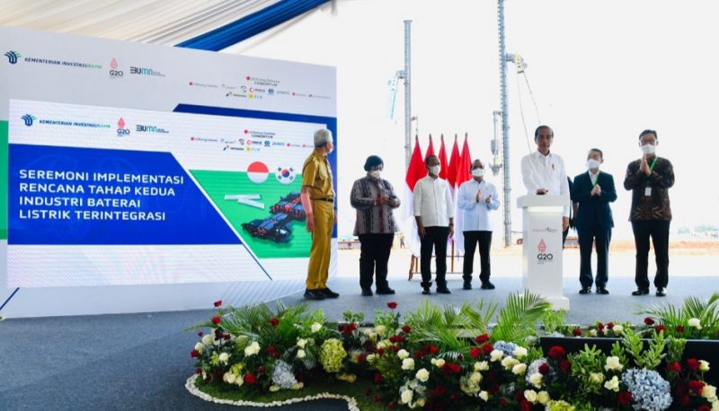 Presiden mengucapkan rasa terima kasih atas kerja sama yang dilakukan semua pihak sehingga pembangunan industri baterai listrik terintegrasi bisa segera dimulai. Presiden mengatakan, industri tersebut memiliki nilai investasi dan penyerapan tenaga kerja yang sangat besar.