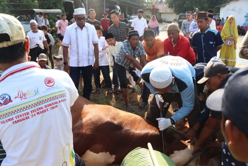 “Di momen Hari Raya Idul Adha 1443 H yang berlangsung hari ini, kami menyembelih hewan kurban sebanyak 8 ekor yang terdiri dari 7 ekor sapi dan satu ekor kambing,” kata Kapolres Tulang Bawang, AKBP Hujra.