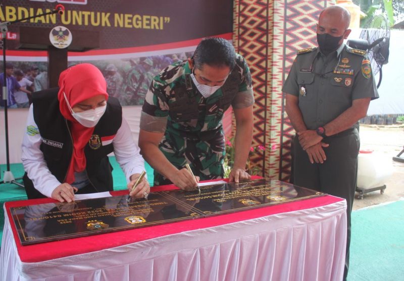 TNI Manunggal Membangun Desa (TMMD) imbangan Kodim 0410/KBL tahun 2020 resmi di tutup Walikota Bandar Lampung Hj. Eva Dwiana.