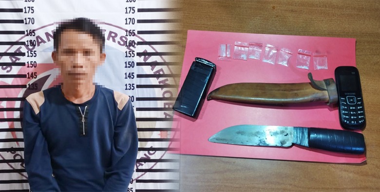 “Saat petugas kami tiba di warung tersebut, sedang ada seorang pria dengan gerak gerik yang mencurigakan, lalu dilakukan penggeledahan badan, dan ditemukan BB berupa narkotika jenis sabu yang disimpan di kantong saku celana sebelah kiri, selain itu di pinggangnya juga terdapat sajam jenis pisau,” papar AKP Aris.