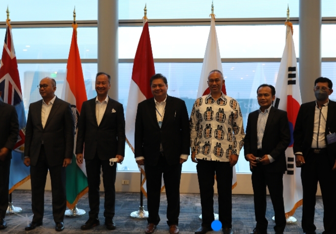 Menko Airlangga menyampaikan apresiasi dan dukungan terhadap inisiasi AS untuk membentuk IPEF yang melibatkan 14 negara. IPEF merupakan inisiatif Amerika Serikat yang secara resmi diluncurkan oleh Presiden Biden pada 23 Mei 2022 di Tokyo. Indonesia telah mengonfirmasi partisipasinya melalui Nota Diplomatik KBRI Washington DC tanggal 17 Mei 2022. Ada 14 negara yang berpartisipasi dalam IPEF, yaitu AS, Australia, Brunei Darussalam, Fiji, Filipina, India, Indonesia, Jepang, Korea Selatan, Malaysia, Selandia Baru, Singapura, Thailand, dan Vietnam.