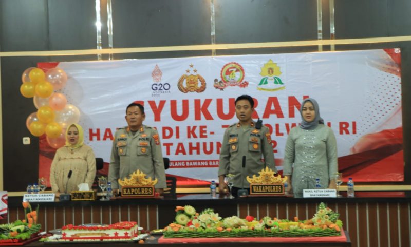 Di sela-sela kepadatan aktivitasnya, Kamis (8/9/2022) Sore, Kapolres Tulang Bawang Barat AKBP Sunhot P. Silalahi, S.I.K, M.M yang didampingi Ketua Bayangkari Cabang Tulang Bawang Barat Ny. Fenty Sunhot, meluangkan waktunya untuk menghadiri acara syukuran HUT Polwan Ke-74 yang digelar di aula Mapolres Tulang Bawang Barat.