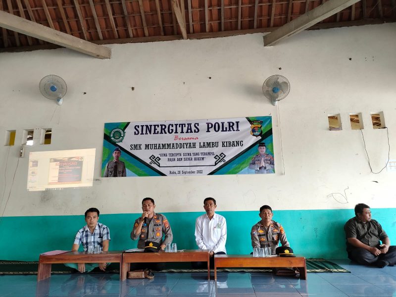 Kapolsek Lambu Kibang Polres Tulang Bawang Barat IPTU Ferry Yuliansyah, S.Sos, M.M didampingi Kanit Binmas IPDA Amiruddin, S.H dan turut mendampingi Kepala Sekolah SMK Muhammadiyah Lambu Kibang Bapak Bambang Suyono, Adapun siswa-siswi yang hadir kurang lebih sebanyak 50 Siswa Siswi SMK Muhammadiyah Lambu Kibang Kab Tulang Bawang Barat.