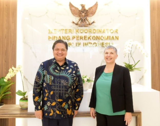 Menteri Koordinator Bidang Perekonomian Airlangga Hartarto menerima kunjungan Duta Besar Australia untuk Indonesia H.E. Penny Williams PSM di Jakarta, Selasa (08/11). Berbagai isu kerja sama ekonomi bilateral dibahas dalam pertemuan yang berlangsung dengan suasana persahabatan yang hangat.