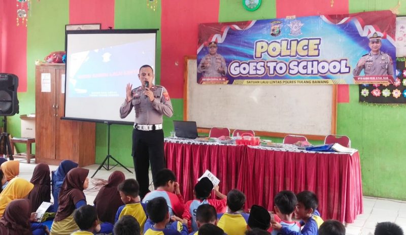 Buanaangkasa.com–Unit Kamsel Satuan Lalu Lintas (Sat Lantas) Polres Tulang Bawang, Polda Lampung, memberikan edukasi sejak dini tentang keselamatan berlalu lintas kepada para pelajar sekolah dasar (SD) yang ada di wilayah hukumnya.