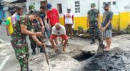 Karya Bakti TNI Satkowil Koramil Laweyan Normalisasi Saluran air