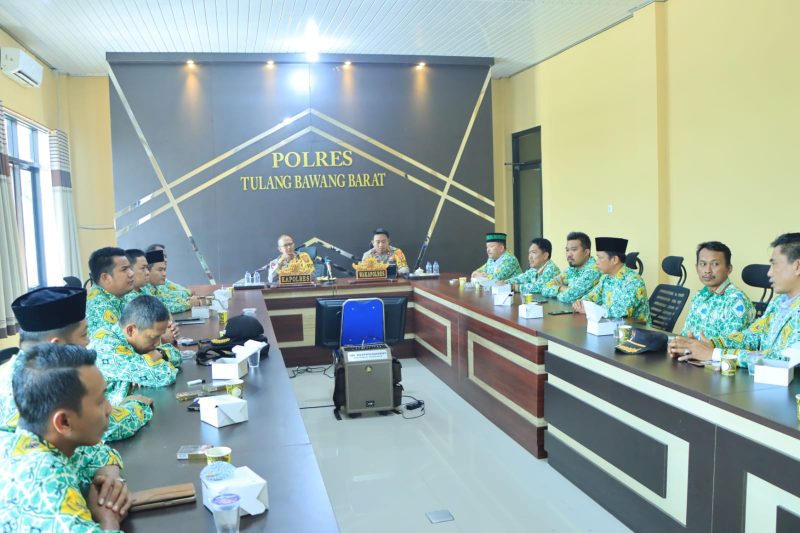 Buanaangkasa.com — Kapolres Tulang Bawang Barat Polda Lampung AKBP Ndaru Istimawan, S. I. K bersama Waka Polres Tulang Bawang Barat Kompol Heru Sulistyananto, S.H, M.H, Terima kunjungan Audiensi Pengurus DPC Apdesi (Asosiasi Pemerintahan Desa Seluruh Indonesia) Lampung Cabang Tulang Bawang Barat di ruangan Vicon Polres Tulang Bawang Barat. Rabu (8/2/2023).