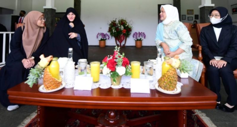 Setelah itu, Ibu Iriana mengajak Madam Jamileh melihat sejumlah kain batik dengan motif khas Indonesia yang ditampilkan. Selanjutnya, Ibu Iriana dan Madam Jamileh menuju tempat jamuan teh bersama.
