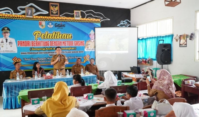 Penjabat (Pj) Bupati Tulang Bawang Barat (Tubaba) Drs. M Firsada, M.Si., menghadiri sekaligus membuka Pelatihan Peningkatan Numerasi Pandai Berhitung Menggunakan Metode Gampang, Asyik dan Menyenangkan (GASING). Bertempat di SMPN 2 Murni Jaya, Kecamatan Tumijajar. Senin (23/10/2023).