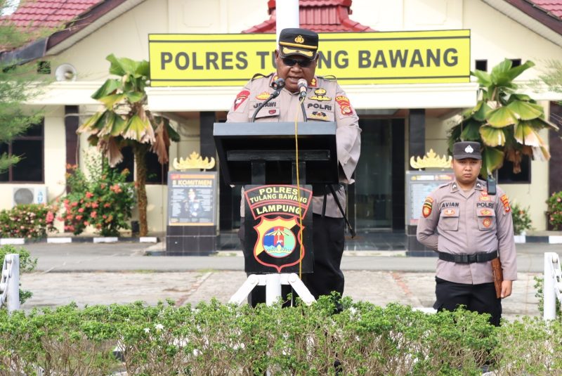 Kegiatan upacara tersebut dipimpin langsung oleh Kapolres Tulang Bawang, AKBP Jibrael Bata Awi, SIK, yang diikuti oleh PJU, personel Polres, ASN, Bhayangkari dan 25 siswa Diktukba Polri Gelombang II TA 2023.