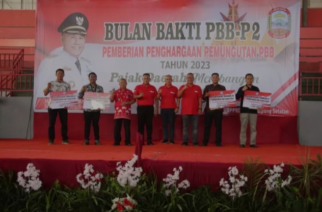 Pemberian penghargaan pemungutan pajak tersebut diberikan kepada Kecamatan, Kelurahan/Desa dan wajib pajak terbaik dalam pemungutan PBB-P2 di Kabupaten Lampung Selatan, yang berlangsung di GOR Way Handak, Jum’at (15/12/2023).