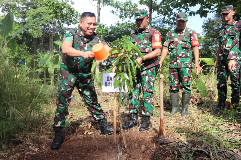 “Hari ini, kami beserta lapisan masyarakat dan dinas pemerintahan setempat melaksanakan program penanaman pohon secara serentak seluruh Indonesia,” ucap Dandim kepada wartawan.