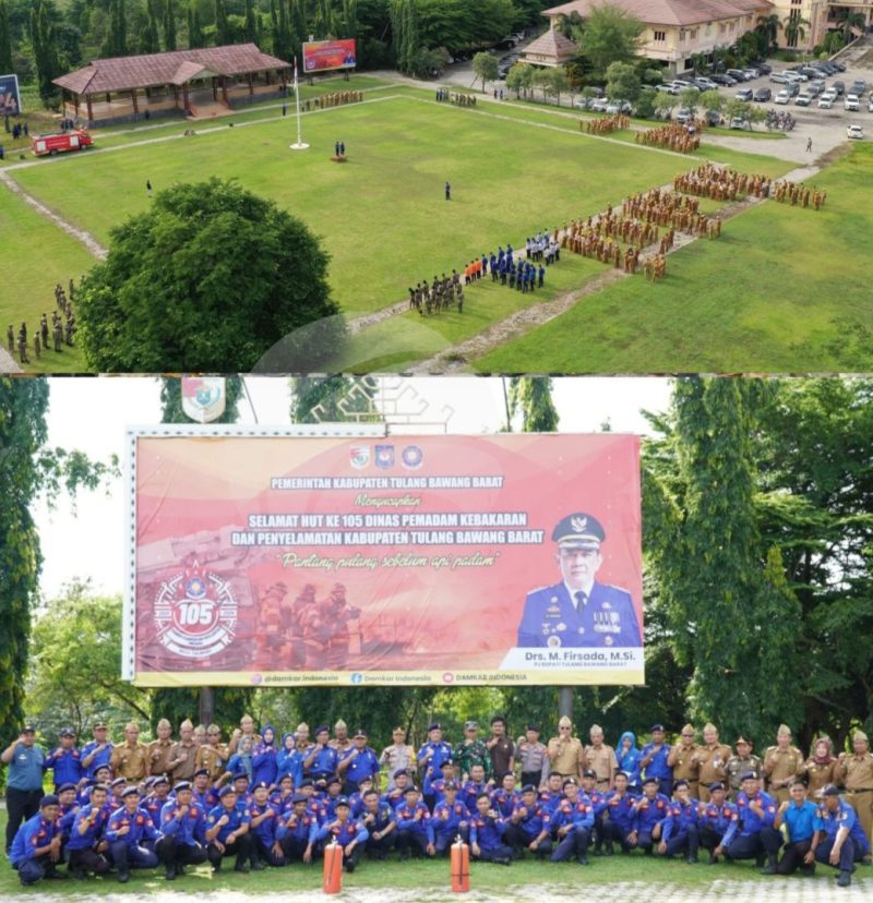 Penjabat (Pj) Bupati Tulangbawang Barat (Tubaba) Drs. M.Firsada, M.Si. memimpin jalannya upacara peringatan Hari Ulang Tahun (HUT) Ke-105 Pemadam Kebakaran (Damkar) Tahun 2024, yang berlangsung di Lapangan Upacara Pemerintah Kabupaten Setempat. Senin (04/03/2024).