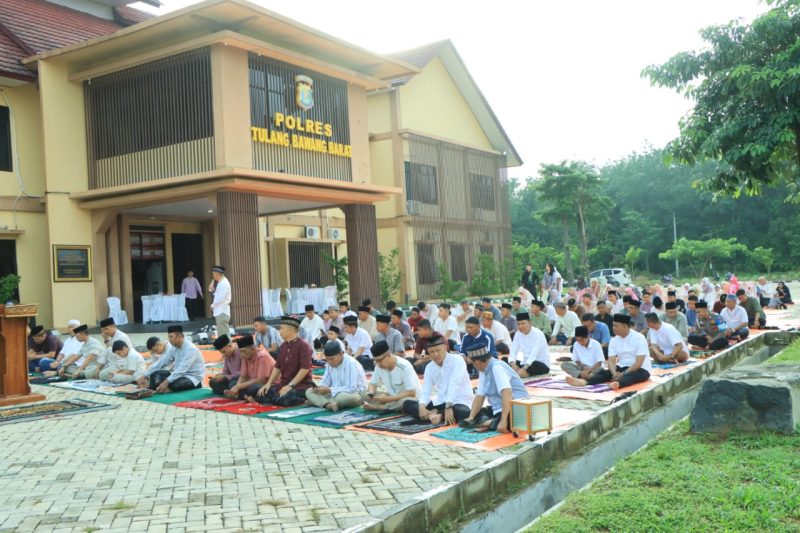 Usai salat ied, Kapolres menyampaikan bahwa salat ied yang dilaksanakan di Halaman Mapolres ini merupakan kegiatan rutin tahunan Polres Tulang Bawang Barat bersama masyarakat sekitar.