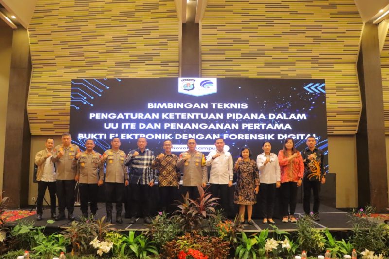 Kapolda Lampung Irjen Pol Helmy Santika S.H., S.I.K., M.Si., membuka acara bimbingan teknis pengaturan ketentuan pidana dalam UU ITE dasar forensik digital dan penggunaan sistem aduan instansi, bertempat di Novotel Bandar Lampung, senin 6/5/24