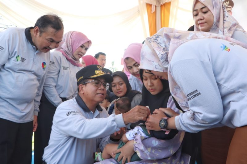 Peresmian PIN Polio ditandai dengan pemberian tetes polio pertama secara simbolis oleh Pj. Gubernur Samsudin sekaligus menandai dimulainya program imunisasi polio massal di 15 Kabupaten/Kota di Provinsi Lampung.