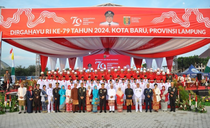 Pelaksanaan Pengibaran sekaligus Penurunam Bendera Merah Putih dalam rangka HUT Kemerdekaan RI ke-79 di Kota Baru menjadi sejarah baru bagi Provinsi Lampung sebagai wujud harapan baru menuju Provinsi Lampung yang Maju dan Sejahtera.