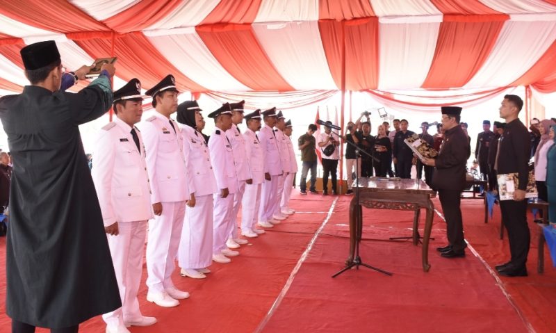 Penjabat Bupati Tulang Bawang Barat (Tubaba) Drs. M. Firsada, M.Si., melakukan Pelantikan kepada 9 Penjabat Kepala Tiyuh se- Kabupaten Tubaba. Di Lapangan Balai Tiyuh Mekar Asri, Kecamatan TBT, Rabu (04/09/2024).