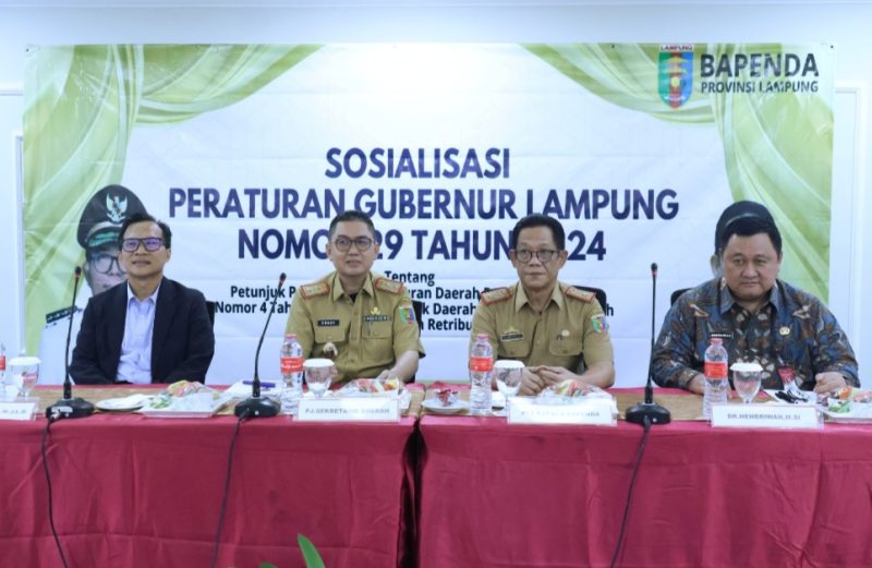 Atas nama Pemerintah Provinsi Lampung, Pj. Sekdaprov mengapresiasi dan menyambut baik diselenggarakannya Sosialisasi Peraturan Gubernur ini, sebagai wahana untuk meningkatkan koordinasi dan sinergitas dalam upaya optimalisasi Pendapatan Dari Sektor retribusi daerah di Provinsi Lampung, sehingga dapat tepat sasaran dan tepat hukum.