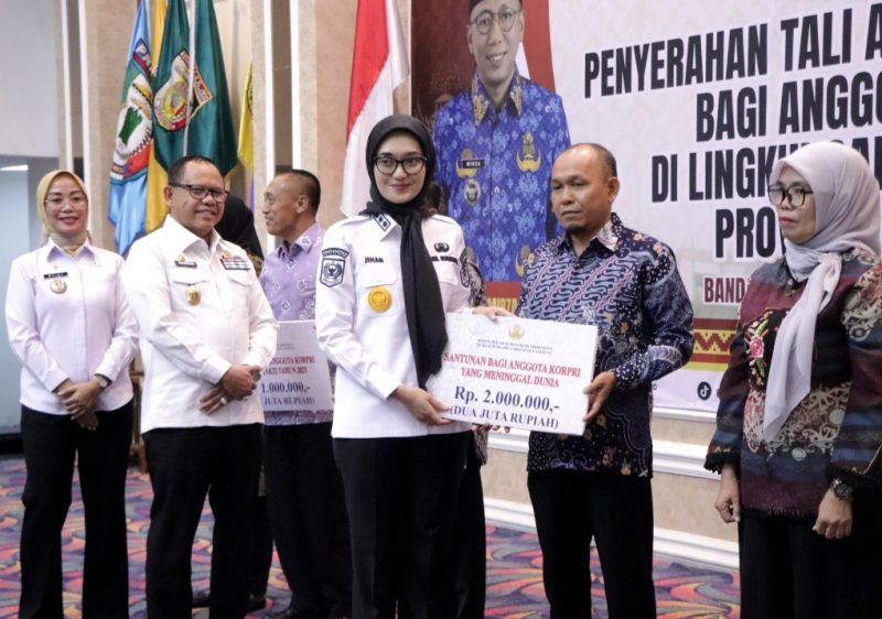 “Atas nama Pemerintah Provinsi Lampung, saya menyampaikan apresiasi yang setinggi-tingginya dan ucapan terima kasih yang tulus kepada seluruh anggota KORPRI atas dharma bakti, dedikasi, loyalitas, serta kerja keras yang telah Bapak/Ibu curahkan dalam memberikan pelayanan terbaik kepada masyarakat,” ungkap Wakil Gubernur Lampung sekaligus Dewan Penasehat KORPRI Lampung, Jihan Nurlela dalam sambutannya pada acara Penyerahan Tali Asih dan Santunan Bagi Anggota KORPRI di lingkungan Pemerintah Provinsi Lampung, bertempat di Gedung Balai Keratun Lt. 3, Rabu (30/4/2025).